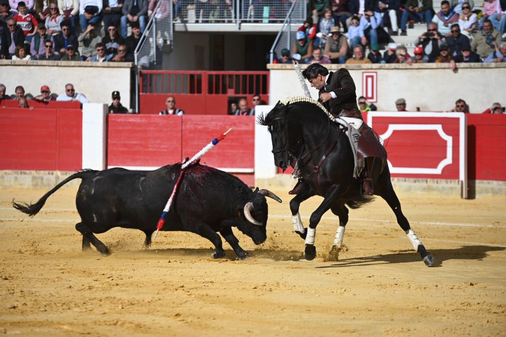No colaboró «Asustado» al lucimiento que intentó Paco Ureña en el recibo de capote. Se le administró un estimable puyazo, lo cual ya fue noticia. Le vino bien al animal, permitiendo que el maestro quitara a continuación por profundas gaoneras, repletas de entrega, que fueron reconocidas con una gran ovación. Puntuó Agustín de Espartinas con los palos, antes de que el de «La Escucha» brindase a sus paisanos y a Ángel Antonio González «El Quillas», torero de Lorca que ejerce como ayudante de Diego Ventura. Se desplazó el toro sin entrega y con cierto genio en los primeros compases del tercer tercio. Muletazos de uno en uno, sin la ligazón necesaria para disparar el diapasón. Tuvo que ponerlo todo Ureña, tirando de garra, para buscar la comunión con el público. Logró acertar con la espada al primer intento, enfriando una petición mayor los sucesivos fallos del puntillero, concediéndose finalmente la oreja.