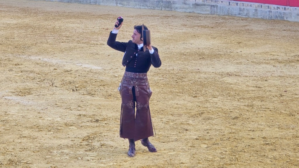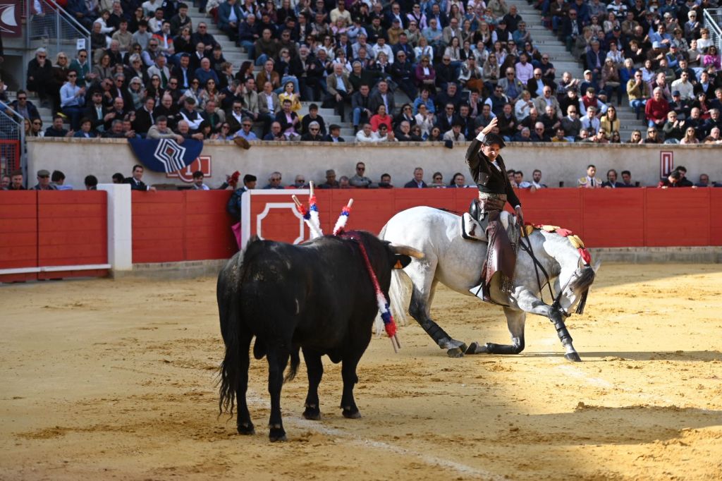 A por todas salió Ventura, que se encontró a un «San Pelayo» que se paró pronto. Puso todo de su parte el caballero para ir construyendo la faena. Buenos pares de banderillas y un desplante marca de la casa, precedió a las lucidas rosas. Lamentablemente volvió a no acertar con el rejón de muerte. El público quiso premiarle con un trofeo como premio a su entrega. Pese a irse por la puerta de cuadrillas, salió a morder, demostrando que no se llega a ser el número uno por casualidad.