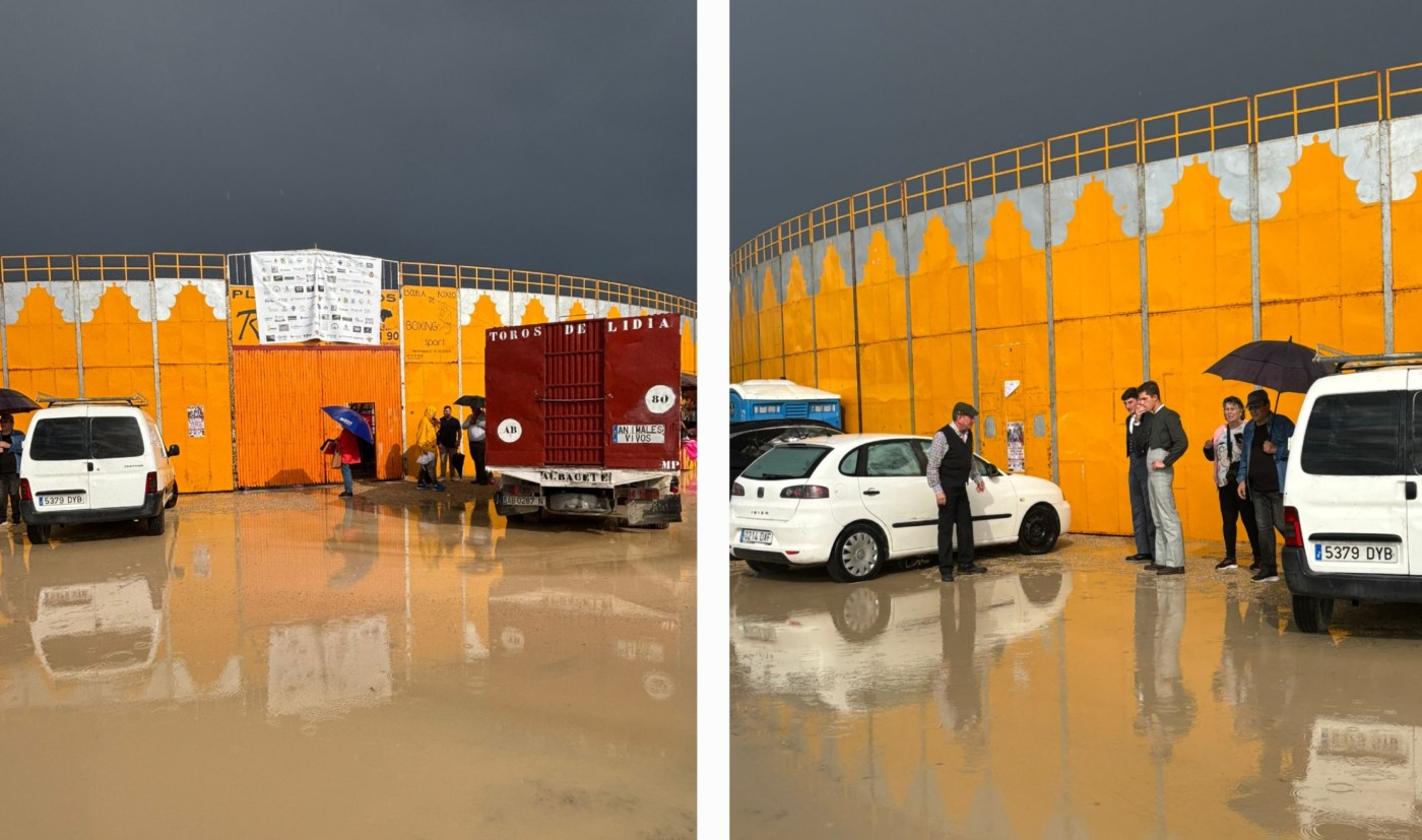 Una intensa tromba de agua acaecida pocos minutos antes del comienzo del tentadero público organizado por la escuela taurina “El Toreo” de Murcia ayer domingo, 11 de mayo, en Alcantarilla impidió el desarrollo de este llevando al traste las ilusiones de los alumnos de esta institución que ya se encontraban vestidos de “corto” en las inmediaciones de la plaza de toros portátil instalada para acoger los eventos taurinos de las fiestas de mayo de esta localidad murciana.