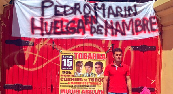 En la puerta grande de la plaza de toros de Albacete, el matador de toros local, Pedro Marín, está desde comienzos de la semana pasada en huelga de hambre indefinida. Pedro, que tomó la alternativa en Tobarra el 15 de agosto de 2011, se ha visto obligado a tomar esta determinación, después de que año... Leer más →