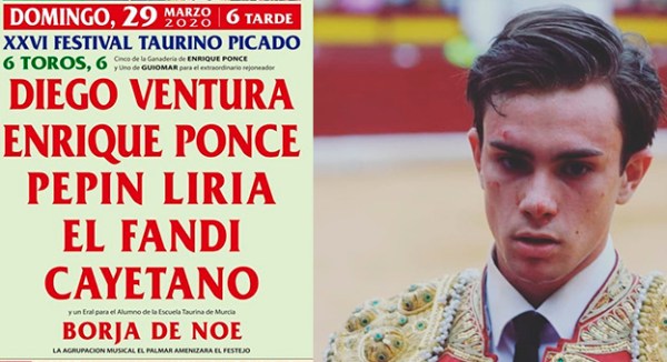 Borja de Noé, uno de los nuevos valores de la escuela de tauromaquia de la Región de Murcia, tiene este año la gran responsabilidad de cerrar el festival benéfico a beneficio de la AECC en Murcia, que se celebrará el domingo 29 de marzo. Es la gran novedad del cartel, y para muchos aficionados, el... Leer más →
