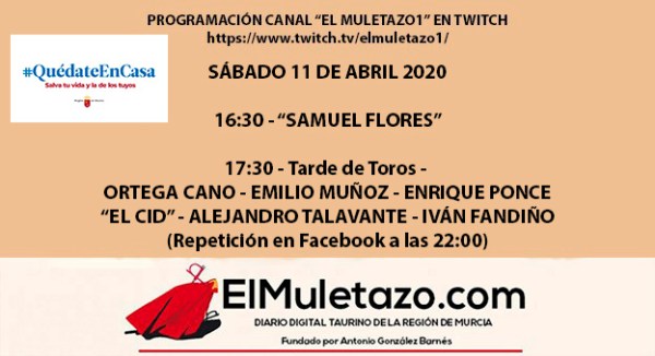 PROGRAMACIÓN CANAL «EL MULETAZO» SÁBADO 11 DE ABRIL – EN EMISIÓN DESDE LAS 16:30 #QuédateEnCasa