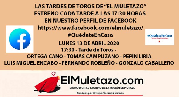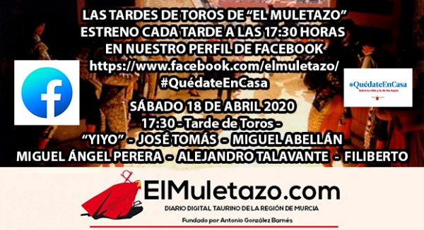 PROGRAMACIÓN CANAL «EL MULETAZO» DOMINGO 12 DE ABRIL – EN EMISIÓN DESDE LAS 16:30 #QuédateEnCasa