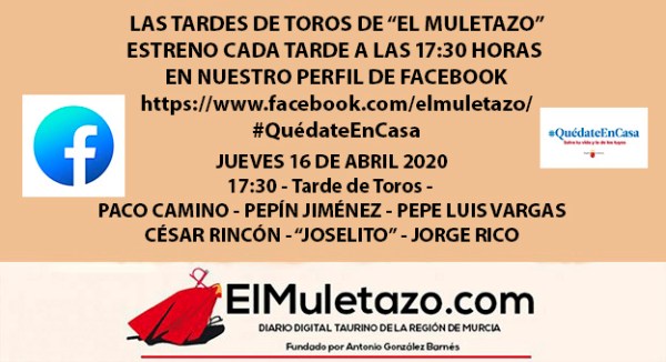 PROGRAMACIÓN CANAL «EL MULETAZO» JUEVES 9 DE ABRIL – EN EMISIÓN DESDE LAS 16:45 HORAS #QuédateEnCasa