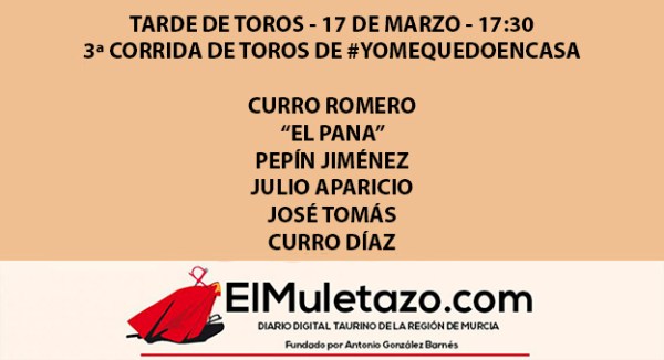 TARDE DE TOROS ONLINE (EN DIRECTO, 17:30h) – 17 DE MARZO #YOMEQUEDOENCASA