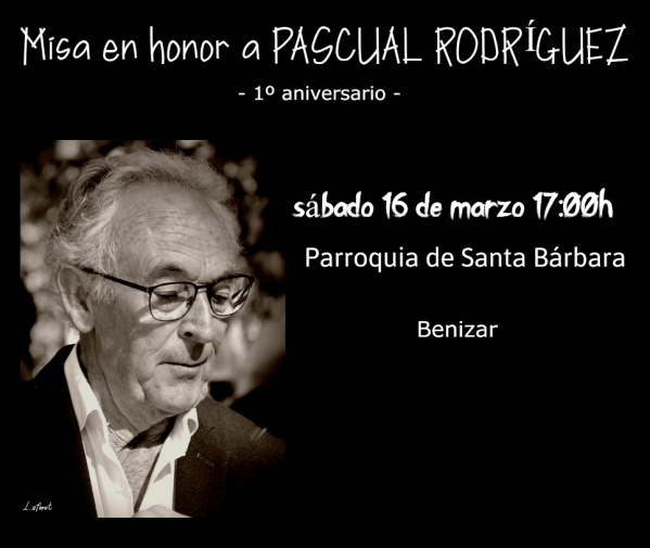 El próximo sábado, 16 de marzo, a las 17 horas, se oficiará en la parroquia de Santa Bárbara de Benizar, la Misa funeral por el recordado ganadero de bravo murciano Pascual Rodríguez en el primer aniversario de su fallecimiento. Pascual fue un hombre queridísimo entre todos los profesionales taurinos de la Región de Murcia, a... Leer más →